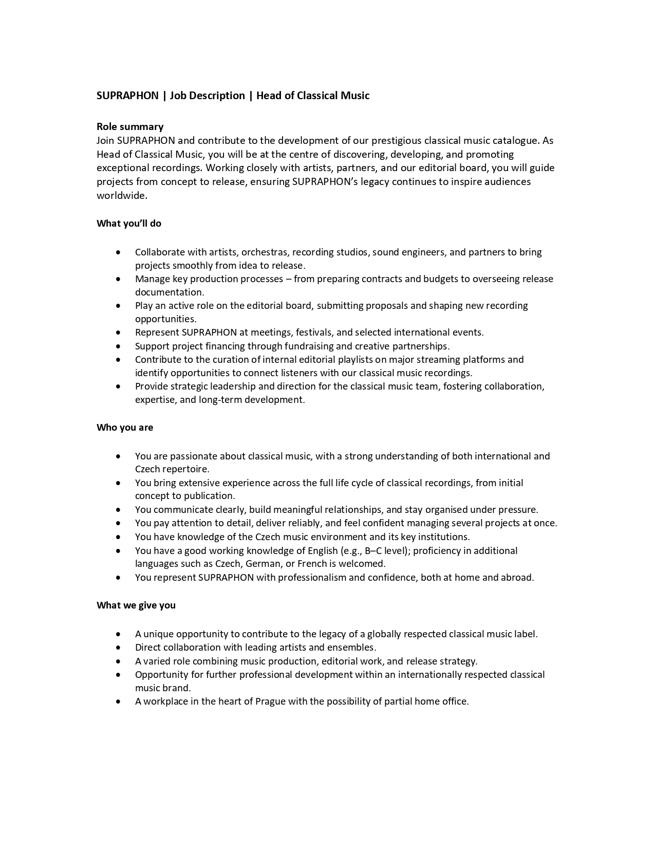 Join SUPRAPHON as Head of Clasiccal Music